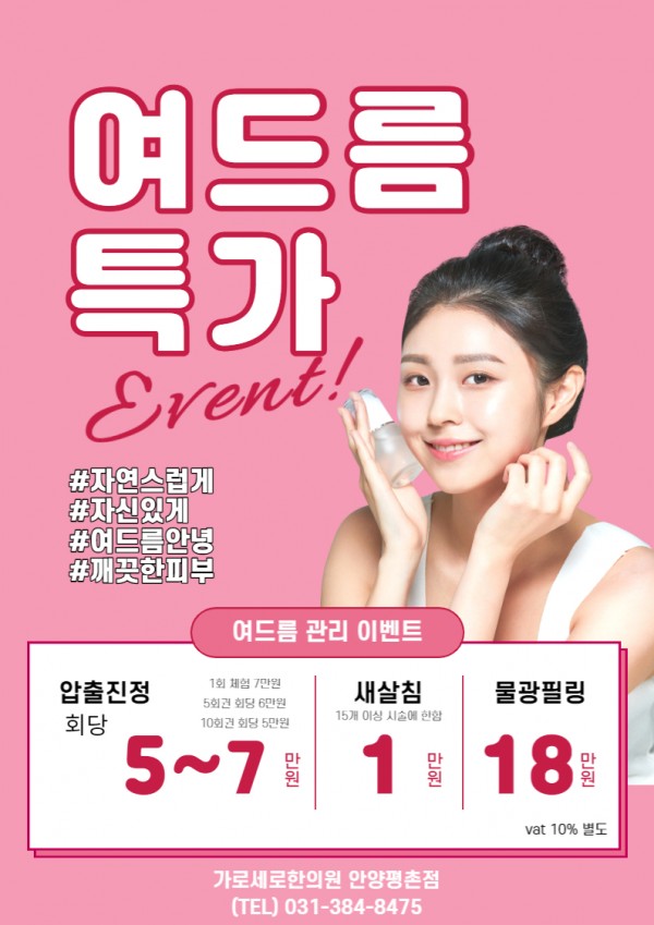 안양 범계 여드름 치료 특가 가격 이벤트 (진정압출 관리, 새살침, 물광필링 이벤트 가격 안내)