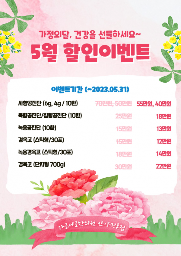 5월 가정의달, 건강을 선물하세요~ 가로세로한의원 안양 경옥고, 공진단 할인 이벤트