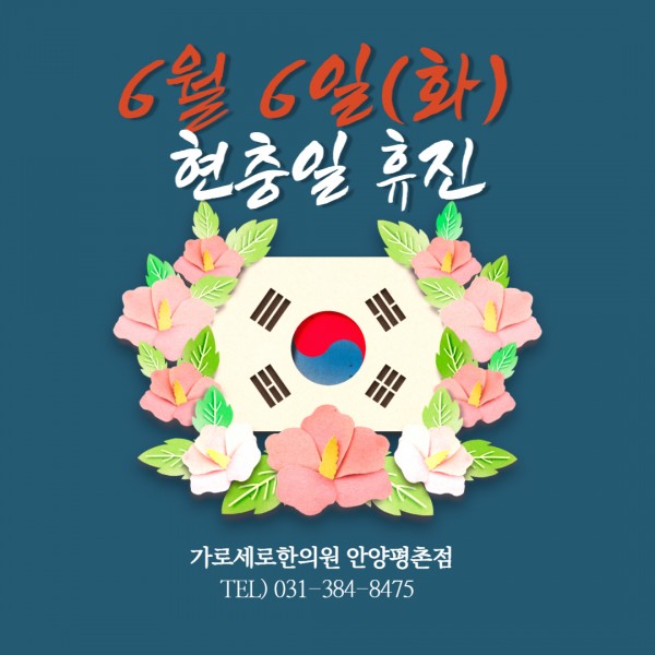 가로세로한의원 안양평촌점, 6월 현충일 휴진안내
