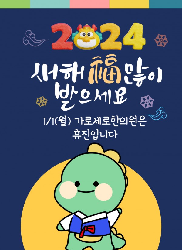 다가오는 1월 1일(월) 저희 가로세로한의원 안양평촌점은 휴진입니다.
