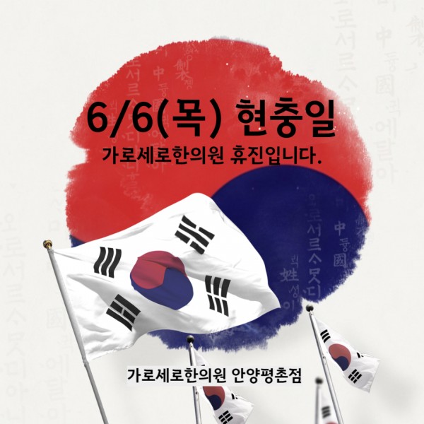 가로세로한의원 안양평촌점, 6월 현충일 휴진 안내