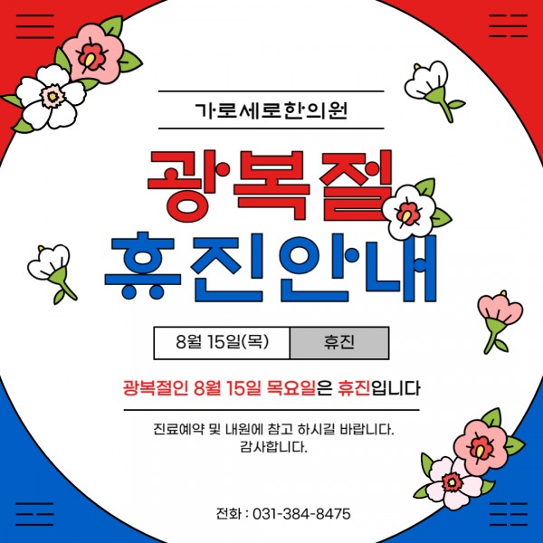 가로세로한의원 안양평촌점, 8월 광복절 휴진 안내