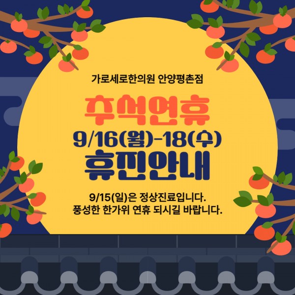 9월 추석 연휴 휴진일 안내, 안양 가로세로한의원
