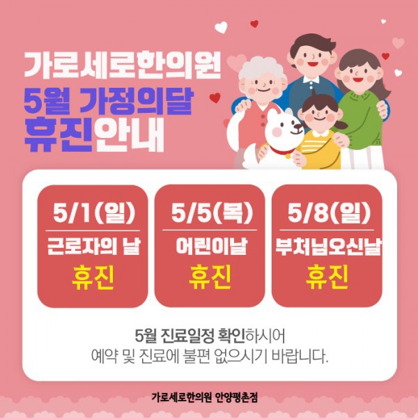 ※ 김혜수 원장님 휴가 - 5/2(월)~5/7(토)