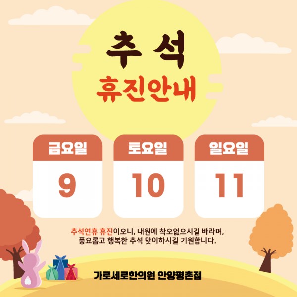 가로세로한의원 안양평촌점 추석 연휴 휴진 안내