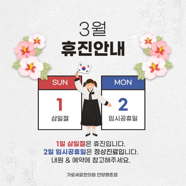 3/2(월) 임시공휴일에는 정상 진료하오니